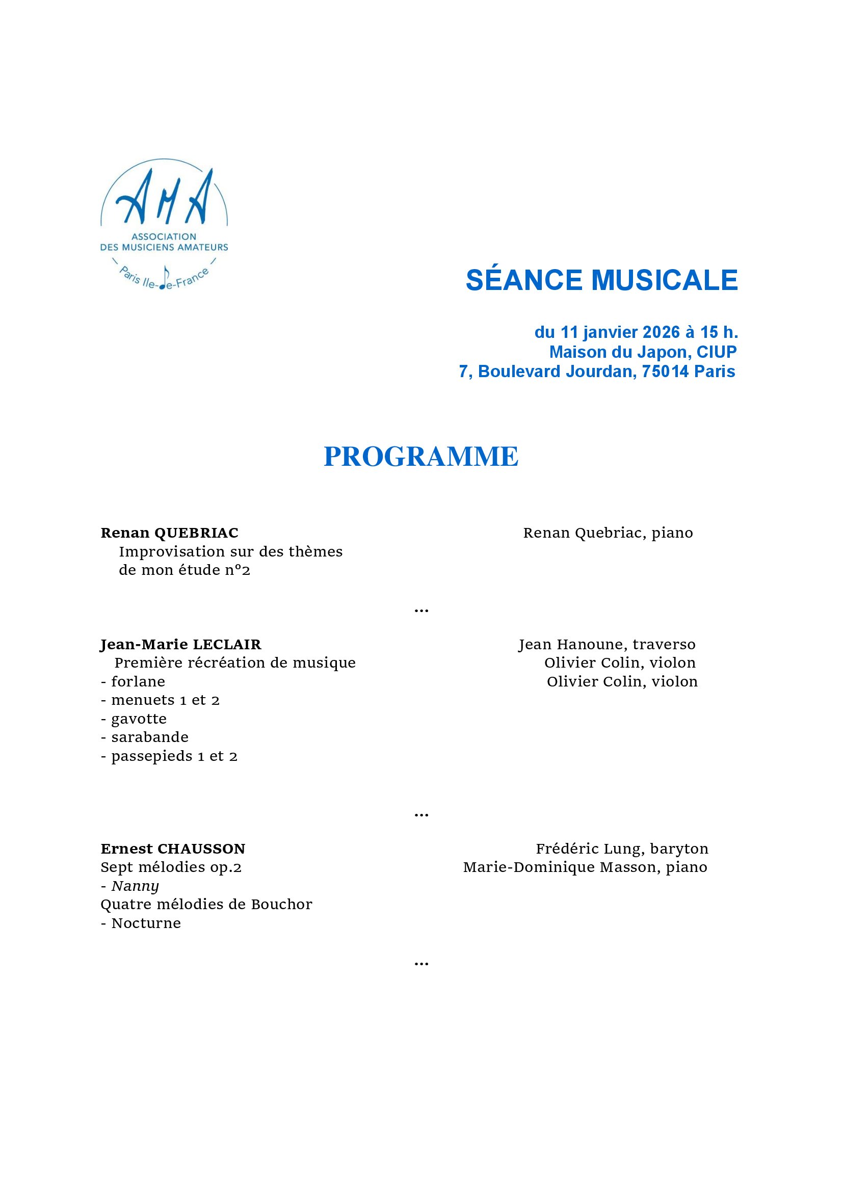 Nous organisons huit séances par an et communiquons les dates dès que possible. Le public est constitué de nos adhérents et leurs invités. Vous n’êtes pas encore adhérent et désirez nous écouter, contactez-nous sur amaidf@free.fr.