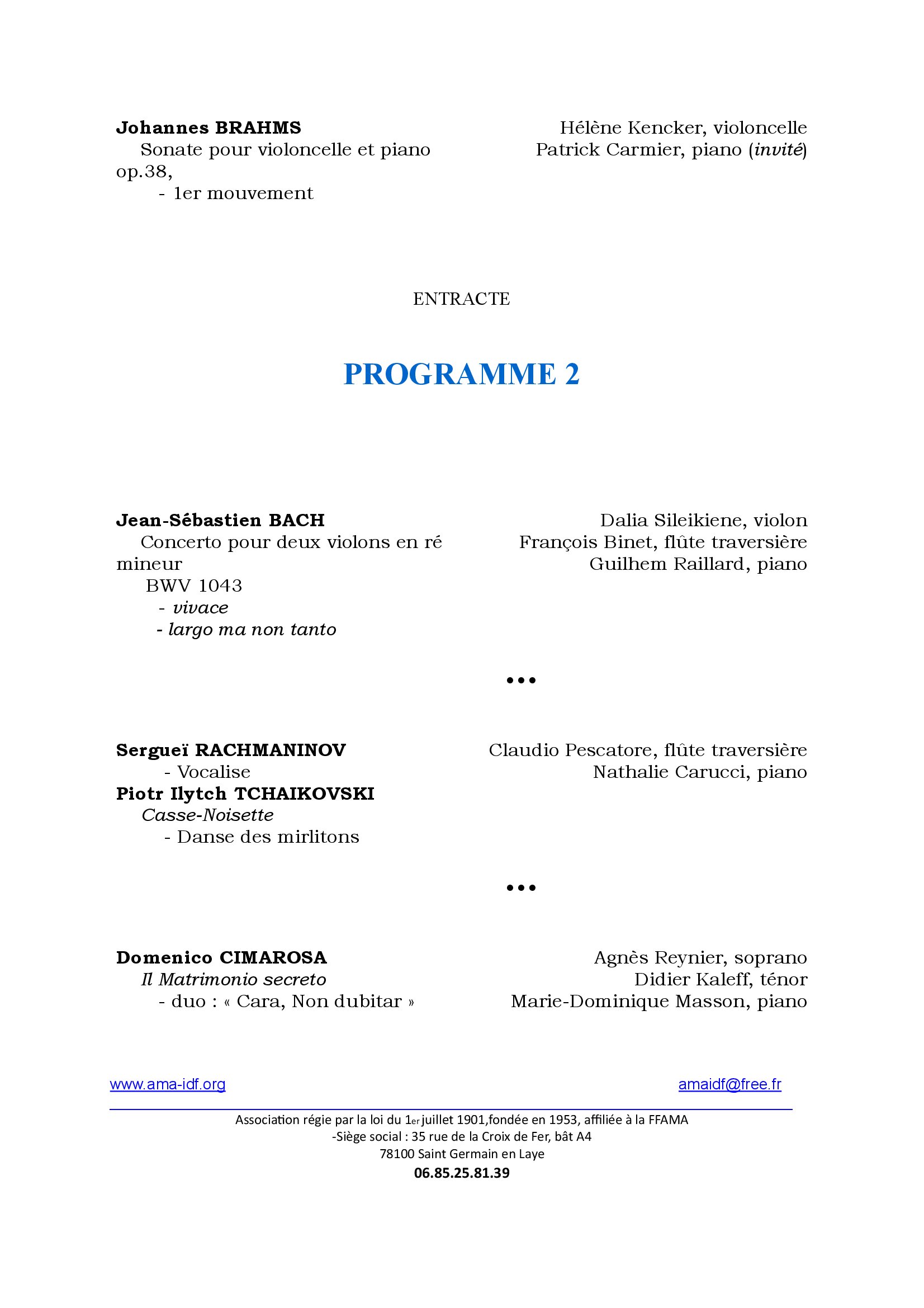 Les demandes d’inscription doivent être adressées au siège social de l’AMA, au plus tard trois semaines avant la date de la séance musicale soit par courrier postal, 35 rue de la Croix de Fer, bât A478100 Saint Germain en Laye